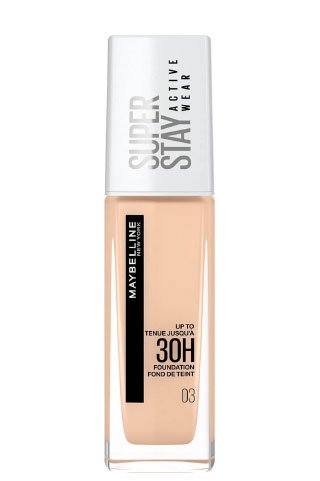 מייק-אפ Super Stay Active Wear עמיד עד 30 שעות, בעל פורמולה קלילה, כיסוי מלא ומראה מט טבעי. המייק-אפ מעניק כיסוי אחיד שאינו דוהה במהלך היום ואינו מכתים. מרקם קליל ולא שומני המעניק גימור טבעי ללא אפקט מסכה. מתאים לכל סוגי העור.